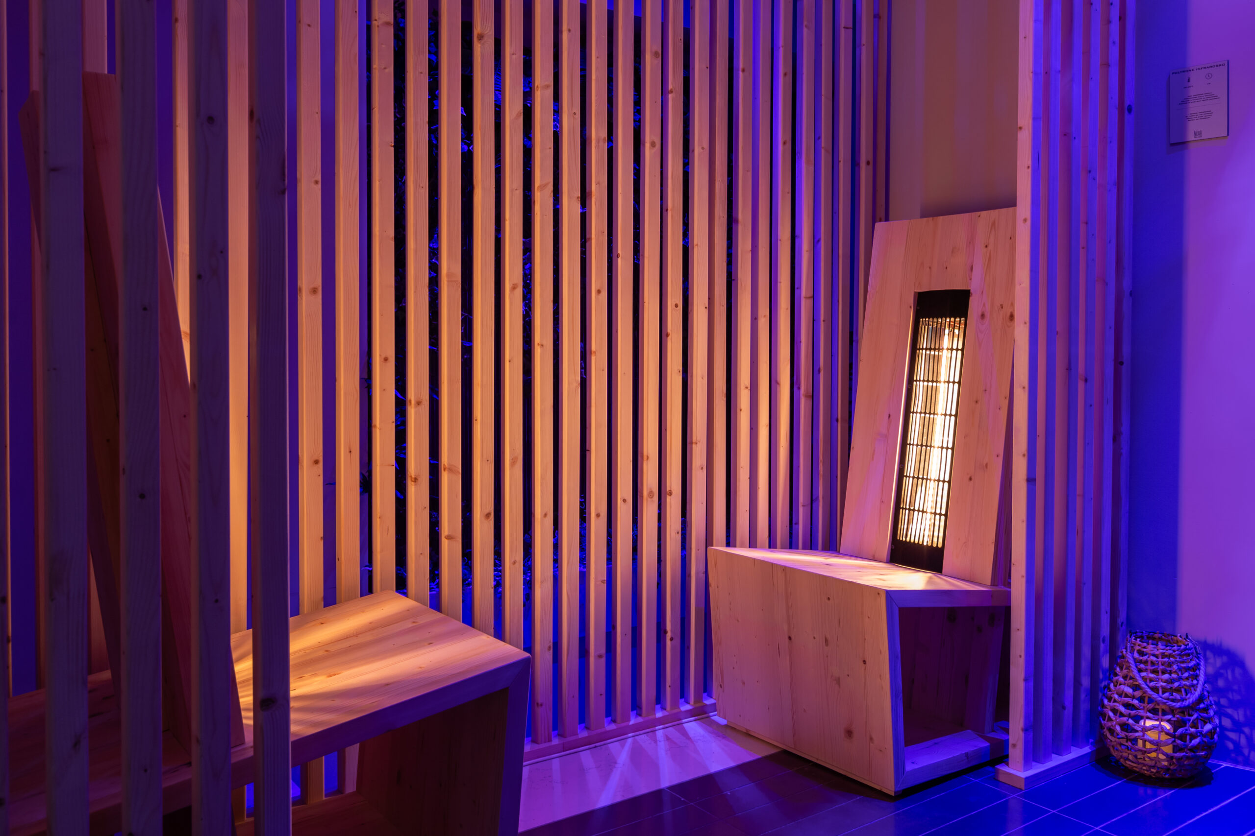 Inside you will find: sauna, Turkish bath, hydromassage tubs, heated water beds, infrared seats and finally a relaxation area with a salt wall.